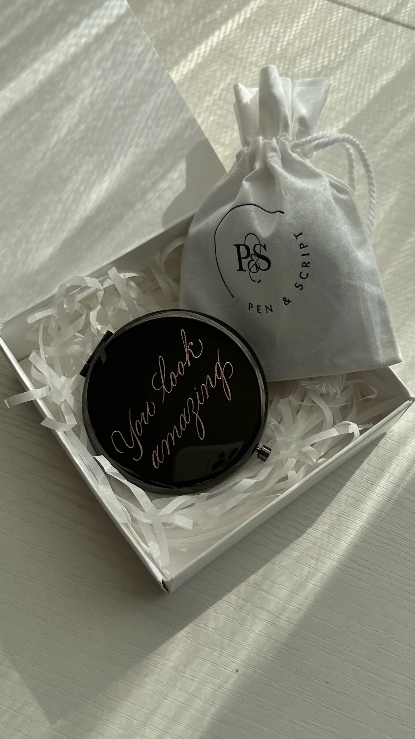 Our engraved compact mirrors are elegant, practical, and the perfect accessory for any outfit and occasion, adding that extra touch of sophistication.
